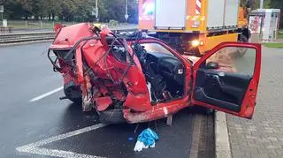Po wypadku, jak mówiła, usiadła przy swoim aucie i odpaliła papierosa. Na środkowym pasie alei Jana Pawła II, tuż przy skrzyżowaniu z ulicą Stawki, stała biała skoda bez rysy. Obok uszkodzone audi, które jeszcze chwilę wcześniej prowadziła. Miało rozbity przód. Wybuchły wszystkie poduszki powietrzne. Przed nim stał czerwony volkswagen. Obrócony w kierunku przeciwnym do tego, w którym jechał. Tyłu auta praktycznie nie było. Zostało zmiażdżone.