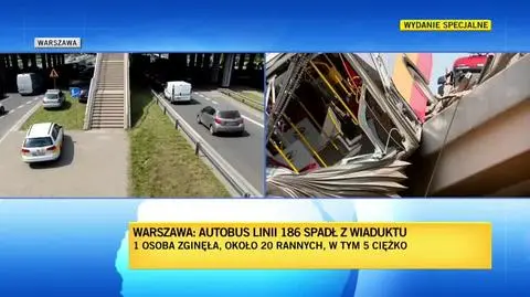 - Przednia część autobusu jest przełamana, leży na dole. To jest kilka, może nawet kilkanaście metrów poniżej jezdni. Druga część znajduje się nadal na górze. To powoduje, że ciągle jest zagrożenie, że ta jego część może się zsunąć. Ten pojazd jest niestabilny. Wysiłki strażaków są skierowane, aby nie tylko jak najszybciej udzielać pomocy poszkodowanym, ale także, aby ustabilizować ten autobus, żeby nie doszło do jeszcze większego wypadku, żeby ten autobus nie zsunął się na dół - relacjonował tuż po wypadku reporter tvnwarszawa.pl.