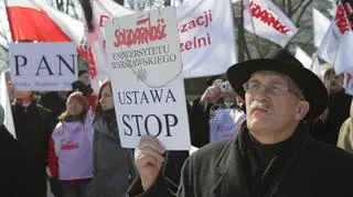 Obecny na demonstracji poseł PiS Artur Górski powiedział, że jest wiele miejsc w ustawie, które "budzą niepokój". - Po przyjęciu ustawy nie będzie gwarancji zachowania praw dla nauczycieli akademickich. Będą mogli w sposób swobodny zostać zwolnieni przez swoich rektorów. Znacznie obniży się także ranga habilitacji, zniechęcając naukowców do awansu naukowego - mówił.
