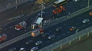Poranny paraliż komunikacyjny na północy stolicy. Ciężarówka z podnośnikiem jadąca ul. Modlińską wywróciła się na jezdnię blokując dwa pasy ruchu w kierunku centrum. - Nikt nie został ranny - informuje policja. Obecnie ruch jest już odblokowany.