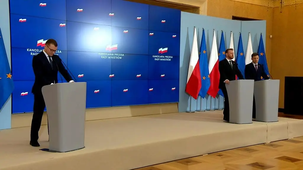 Na konferencji towarzyszyli mu szef Kancelarii Prezesa Rady Ministrów Michał Dworczyk oraz sekretarz stanu w Ministerstwie Spraw Wewnętrznych i Administracji Paweł Szefernaker.