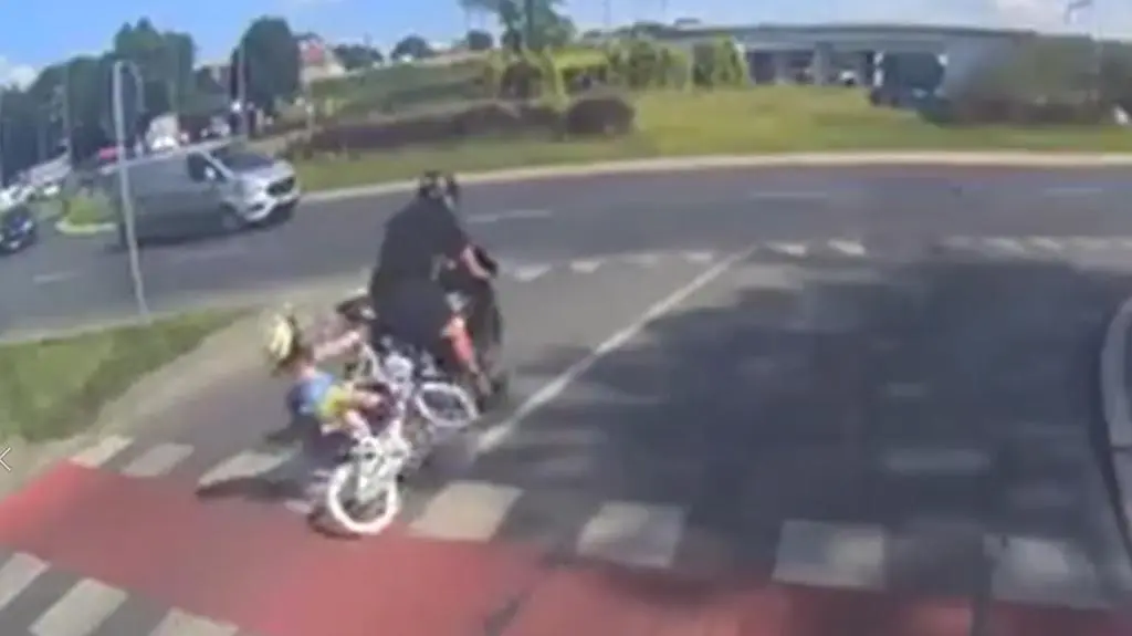 Do potrącenia dziecka doszło 25 czerwca tego roku na ulicy Artyleryjskiej w Olsztynie. Na nagraniu udostępnionym przez policję widać przejazd dla rowerzystów, po którym jedzie kobieta, a tuż za nią jej 6-letnia córka. Nagle w dziecko uderza motocyklista. Dziewczynka przewraca się i szybko ucieka z jezdni.