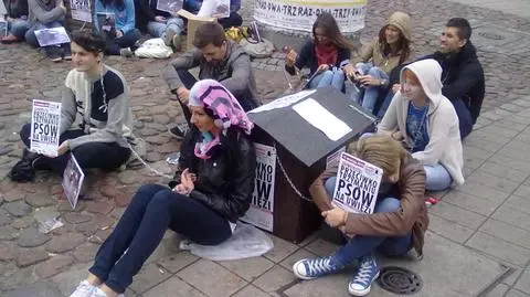 Przykuli się do bud w centrum Poznania. Mokli przez kilka godzin