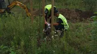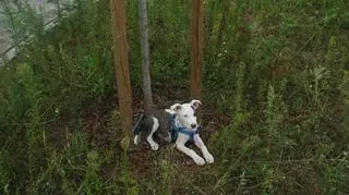 Przywiązany szczeniak w zaroślach. Uwolnili go strażnicy miejscy