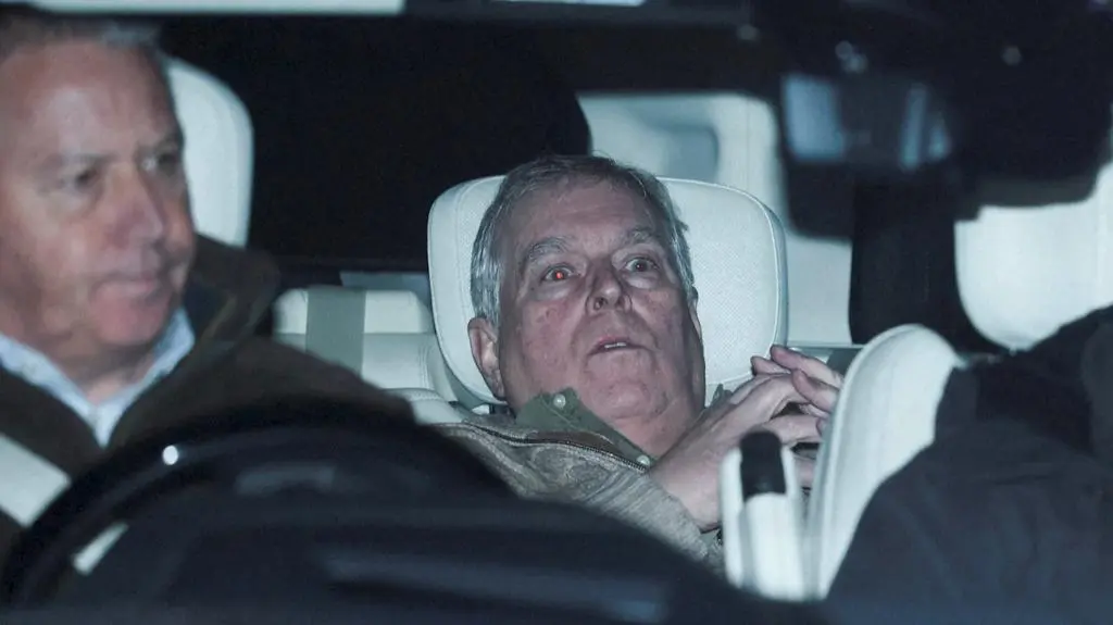 Były książę Andrzej siedzi na tylnym siedzeniu samochodu, z szeroko otwartymi oczami spogląda, jakby nie mógł uwierzyć w to, co się stało. Właśnie opuszcza posterunek policji w hrabstwie Norfolk. Jeszcze chwilę temu był przesłuchiwany.