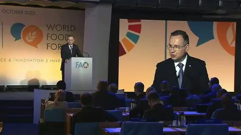 W swoim wystąpieniu na forum Organizacji Narodów Zjednoczonych do spraw Wyżywienia i Rolnictwa (FAO) prezydent Andrzej Duda zwracał uwagę, że bezpieczeństwo żywnościowe i zrównoważony rozwój w świecie jest poważnie zagrożone, szczególnie - jak mówił - w efekcie "napędzanej imperialistyczną pychą zbrodniczej agresji Rosji przeciwko Ukrainie".