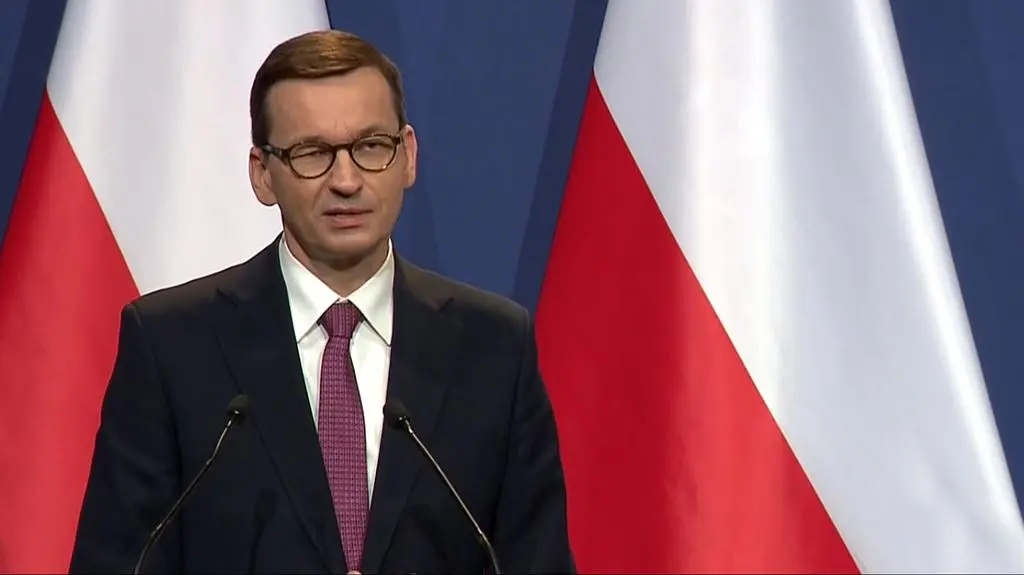 Premier Mateusz Morawiecki na konferencji prasowej w Budapeszcie podziękował Viktorowi Orbanowi "za zaproszenie tutaj na dyskusję o przyszłości Europy i obecnej sytuacji pandemicznej".