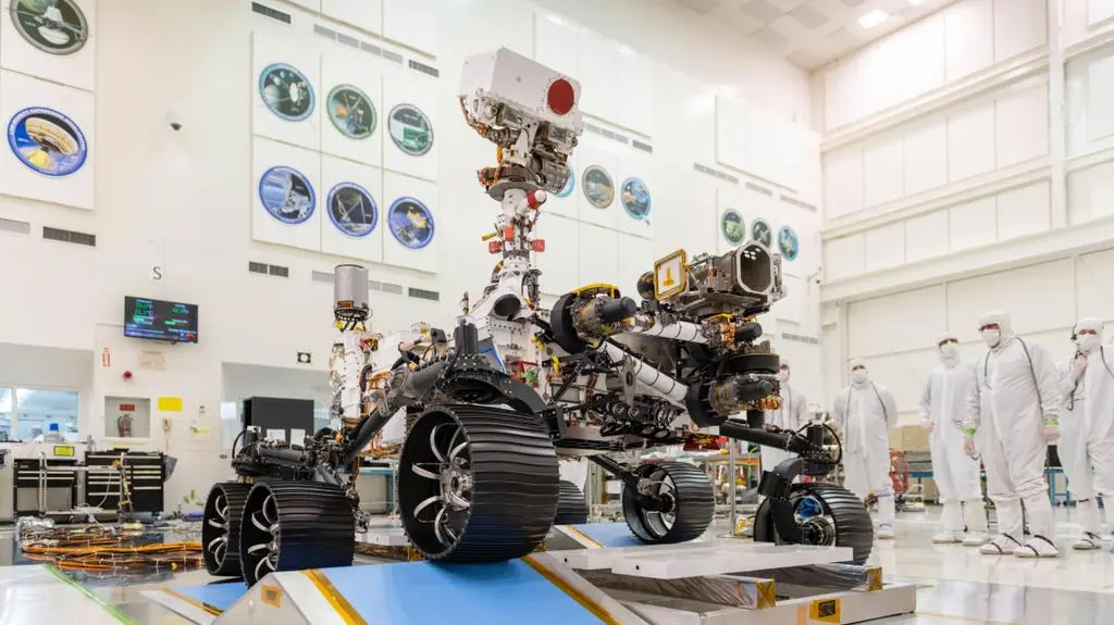Perseverance to bezzałogowy robotyczny pojazd o masie 1043 kilogramów. Łazik według założeń ma działać przynajmniej jeden rok marsjański (około 687 dni ziemskich).
