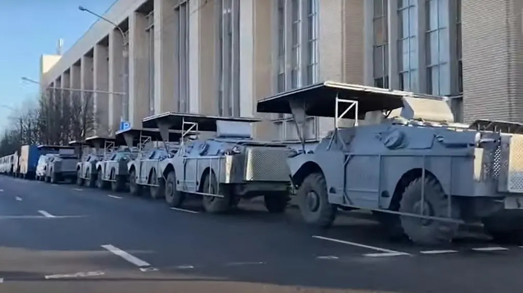 Sprzęt do rozpędzenia protestów w centrum Mińska
