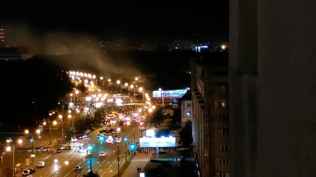 Jak relacjonował o godzinie 21 w magazynie "Polska i Świat" dziennikarz Denis Dziuba z telewizji Biełsat z Mińska, "policja i wojska sił MSW stoją na małych osiedlach w każdej dzielnicy i pilnują porządku". Przekazał, że demonstrujący zbierają się obok sklepów osiedlowych, przy stacjach metra i obok domów.