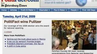 "Odzielali retorykę od prawdy, by oświecać wyborców" - brzmiał werdykt kapituły Nagrody Pulitzera. Po wyborach PolitFact nie spoczął na laurach i dalej rozlicza, przede wszystkim Baracka Obamę, ze składanych obietnic.