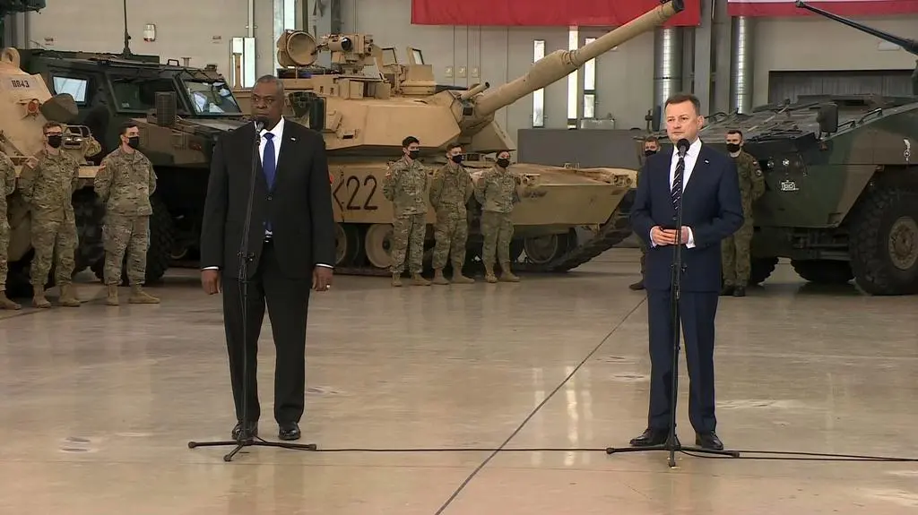 Szef MON podziękował Austinowi za zwiększoną obecność wojsk amerykańskich w Polsce. - Chciałbym także podziękować żołnierzom Stanów Zjednoczonych za ich codzienną służbę tutaj w Polsce, a panu sekretarzowi za wizytę i za osobiste zaangażowanie w rozwój relacji sojuszniczych polsko-amerykańskich - powiedział minister. Podkreślił, że żołnierze polscy i amerykańscy służyli już razem w wielu miejscach na świecie, na przykład w Iraku i Afganistanie.