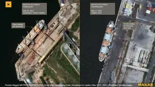 Zdjęcia firmy Maxar pokazały dwa załadowane ziarnem masowce pod rosyjską banderą zadokowane w maju w kontrolowanym przez Rosję krymskim porcie Sewastopol. Kilka dni później satelity Maxar zarejestrowały te same statki zadokowane w Syrii, z otwartymi lukami i półciężarówkami gotowymi do wywiezienia zboża.