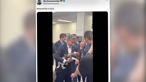 Jeszcze przed oficjalnym komunikatem w sprawie wizyty Blinkena w Kijowie w mediach społecznościowych pojawiło się nagranie, na którym widać szefa amerykańskiej dyplomacji ze słynnym psem Patronem, który pomaga siłom ukraińskim m.in. w wykrywaniu min pozostawionych przez Rosjan.