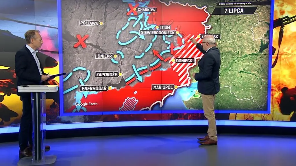 Jego zdaniem, "Rosjanie, chcąc wykorzystać powodzenie po zdobyciu Siewierodoniecka oraz Lisiczańska, podciągnęli odwody z rejonu Kurska, gdzie były formowane nowe jednostki wojskowe, i kontynuują swoją operację, którą prowadzili w kierunku na Lisiczańsk". - Uderzyli jeszcze przedwczoraj i wczoraj od północy i od południa w kierunku rubieży Bachmut i Siewiersk - dodał.