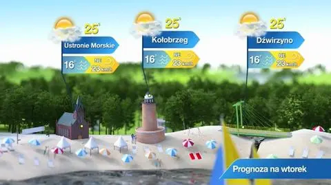 We wtorek urlopowicze wypoczywający nad polskim morzem, którego temperatura będzie się wahała między 16 a 21 st. C, nie będą zbyt zadowoleni, choć temperatura powietrza wyniesie 24-27 st. C. Synoptycy prognozują wystąpienie przelotnych opadów deszczu i związane z tym umiarkowane i duże zachmurzenie nieba. Tylko miłośnicy sportów wodnych wykorzystujący siłę wiatru będą mieli powody do zadowolenia - będzie wiało średnio 17-26 km/h.