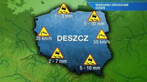 Opady wpłyną na przyczepność kół. Najniebezpieczniej będzie na południu kraju, gdzie spadnie nawet do 10 mm deszczu.