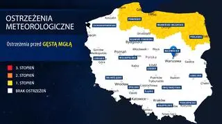 Synoptycy Instytutu Meteorologii i Gospodarki Wodnej wydali ostrzeżenia pierwszego stopnia przed gęstą mgłą w województwach: