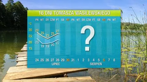 W ostatnim tygodniu lipca czeka nas kilkudniowe ochłodzenie. Najbardziej da się ono odczuć w ten wtorek i środę, bo nad morzem i na północy kraju będzie tylko ok. 20 stopni. Następne dni powinny być cieplejsze, a pod koniec miesiąca na południu zrobi się upalnie, do 30 stopni. Na północy będzie ok. 25 st. C. Później, na początku sierpnia, czeka nas zdecydowanie ciepła pogoda z temperaturą od 24 do 31 stopni. Tak będzie do 4 sierpnia, po czym na kilka dni temperatura znowu się obniży.
