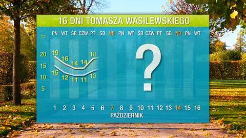 W pierwszym tygodniu października najwyższej temperatury, czyli 19 stopni, można spodziewać się w poniedziałek i sobotę, ale tylko na południu kraju, bo poza tym będzie o kilka stopni mniej. Najchłodniej zapowiada się środek tygodnia, bo wtedy będzie tylko od 11 do 14 stopni. Następny tydzień zacznie się chłodną pogodą, ale 11 i 12 października czeka nas ocieplenie, znowu najbardziej odczuwalne na południu, gdzie może być 18, 19 stopni. Z kolei w połowie miesiąca bardzo prawdopodobne jest większe ochłodzenie i spadek temperatury do około 5, 10 stopni.