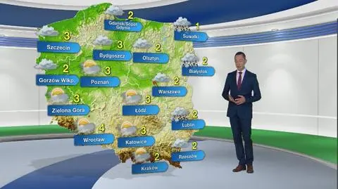 W piątek czeka nas duże zachmurzenie z nielicznymi przejaśnieniami. Na wschodzie kraju po południu spadnie deszcz i deszcz ze śniegiem. Będzie ślisko. Na termometrach zobaczymy maksymalnie od 1 stopnia Celsjusza na Suwalszczyźnie do 4 st. C. na Dolnym Śląsku. Wiatr będzie słaby i umiarkowany, południowo-wschodni.
