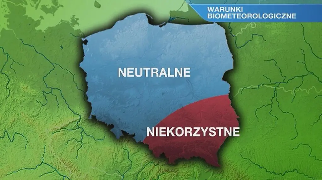 Wilgotność powietrza wyniesie od około 70 do 90 procent. Na przeważającym obszarze kraju odczujemy komfort termiczny, tylko na krańcach zachodnich ciepło. Warunki biometeorologiczne okażą się na ogół neutralne.