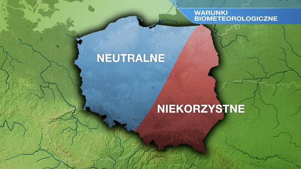 W niedzielę na przeważającym obszarze kraju wilgotność będzie bardzo wysoka, utrzyma się w granicach 90 procent. Niemal wszędzie odczujemy chłód, tylko na północnym wschodzie - zimno. Mieszkańcy Polski wschodniej oraz części regionów centralnych mogą spodziewać się niekorzystnego wpływu pogody na samopoczucie. W pozostałych regionach warunki biometeo okażą się neutralne.