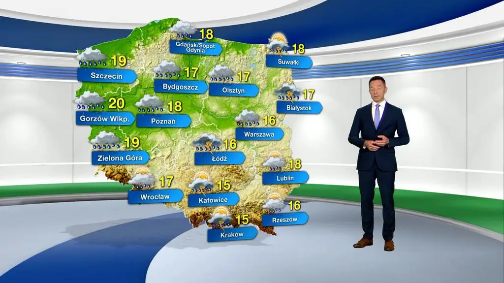 Zachmurzenie duże, opady deszczu, przejściowo dość intensywne. Na termometrach zobaczymy maksymalnie 18 st. C. Z kierunków północnych powieje słabo i umiarkowanie, okresami dość silnie. Ciśnienie w południe spadnie do 1001 hPa.