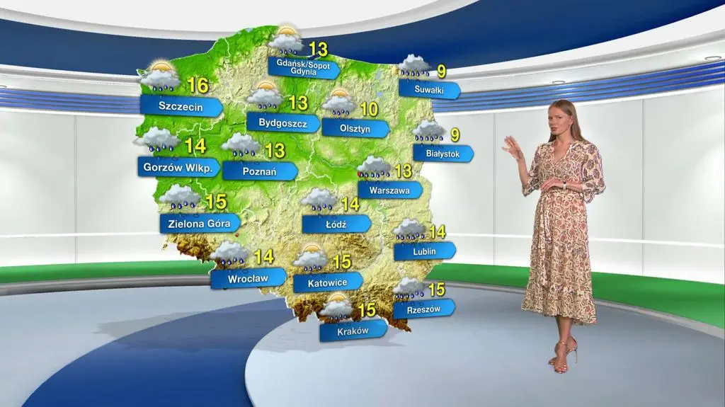 Duże i całkowite zachmurzenie ze słabymi, przelotnymi opadami deszczu. Temperatura maksymalna wyniesie 14 st. C Wiatr będzie umiarkowany, północno-zachodni, skręcający na północny. Ciśnienie w południe sięgnie 999 hPa, będzie się wahać.