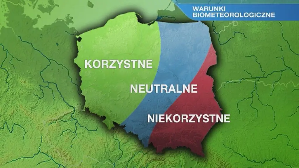 W południowej i wschodniej Polsce wilgotność powietrza będzie najwyższa (ponad 70 proc.), a na zachodzie najniższa (poniżej 60 proc.). Wszędzie odczujemy chłód. Niekorzystne warunki biometeorologiczne na południowym wschodzie będą przechodzić w neutralne w centrum kraju i korzystne na zachodzie.