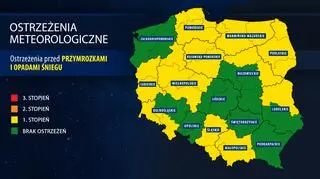 Instytut Meteorologii i Gospodarki Wodnej wydał ostrzeżenia pierwszego stopnia przed opadami śniegu i przymrozkami.