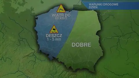 Warunki będą znacznie utrudnione na zachodzie i w centralnej części Polski, gdzie spodziewane są opady deszczu, do 5 l/mkw. Front będzie przemieszczać się na wschód, w kierunku województw centralnych, gdzie warunki na drogach pogorszą się.