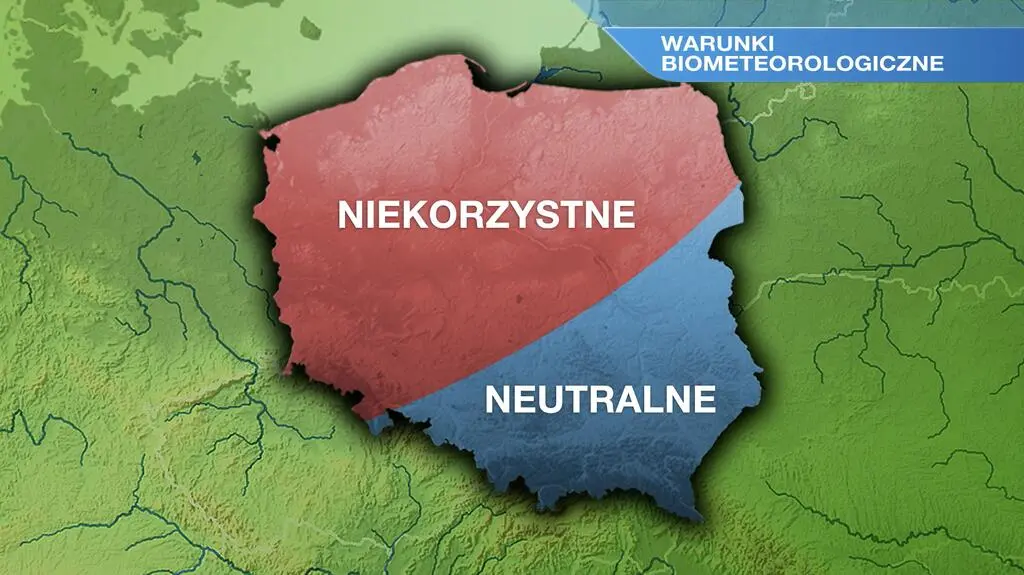 Największa wilgotność powietrza wystąpi na północy i zachodzie Polski. W większości kraju będzie chłodno, jedynie w południowo-wschodnich regionach wystąpi komfort termiczny. Biomet będzie na ogół niekorzystny, jedynie na południowym wschodzie neutralny.
