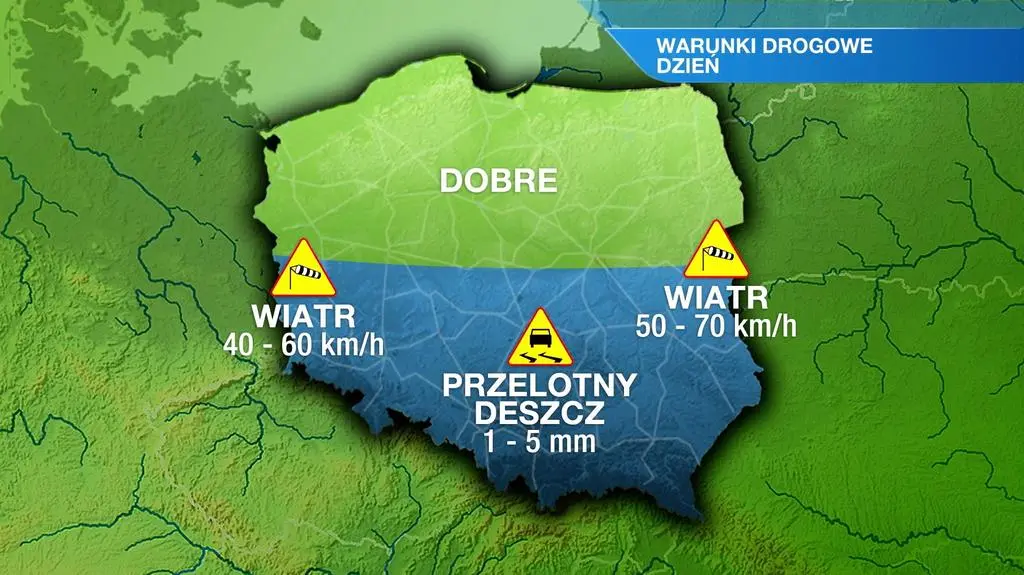 Niedziela przyniesie nam zmienne zachmurzenia. Na południu pojawią się szybko zanikające, przelotne opady deszczu rzędu 5 litrów wody na metr kwadratowy. Przelotne opady niewykluczone są spodziewane także na Podlasiu. Na termometrach zobaczymy maksymalnie od 10 stopni Celsjusza na Suwalszczyźnie do 15 st. C na Dolnym Śląsku. Wiatr będzie umiarkowany i dość silny, a powieje z północnego zachodu. Chwilami jego porywy mogą dochodzić do 40-70 kilometrów na godzinę. W strefie brzegowej porywy mogą być jeszcze silniejsze - do 60-80 km/h.
