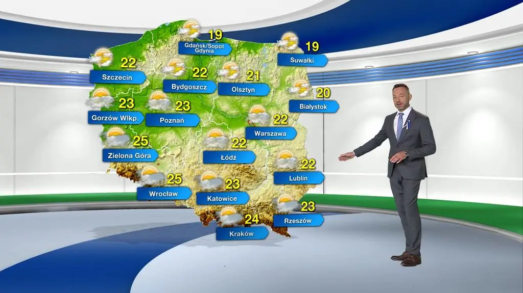 Aura w piątek upłynie pod znakiem małego i umiarkowanego zachmurzenia, które od południa będzie stopniowo wzrastać do dużego. Wieczorem w Sudetach może spaść nieco deszczu. Na termometrach zobaczymy maksymalnie od 19 stopni Celsjusza na Kaszubach i Suwalszczyźnie, przez 22 st. C w centrum kraju, do 25 st. C na Ziemi Lubuskiej i Dolnym Śląsku. Powieje słaby i umiarkowany wiatr z południa i zachodu.