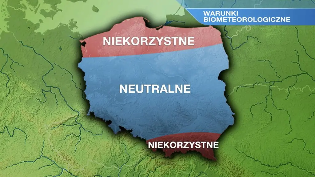 Wilgotność powietrza w ciągu dnia wahać się będzie od 80 do 90 procent. Niemal w całym kraju odczujemy komfort termiczny, tylko na północnym wschodzie będzie chłodno. Warunki biometeorologiczne przeważnie okażą się neutralne, niekorzystne jedynie na północy i południu.