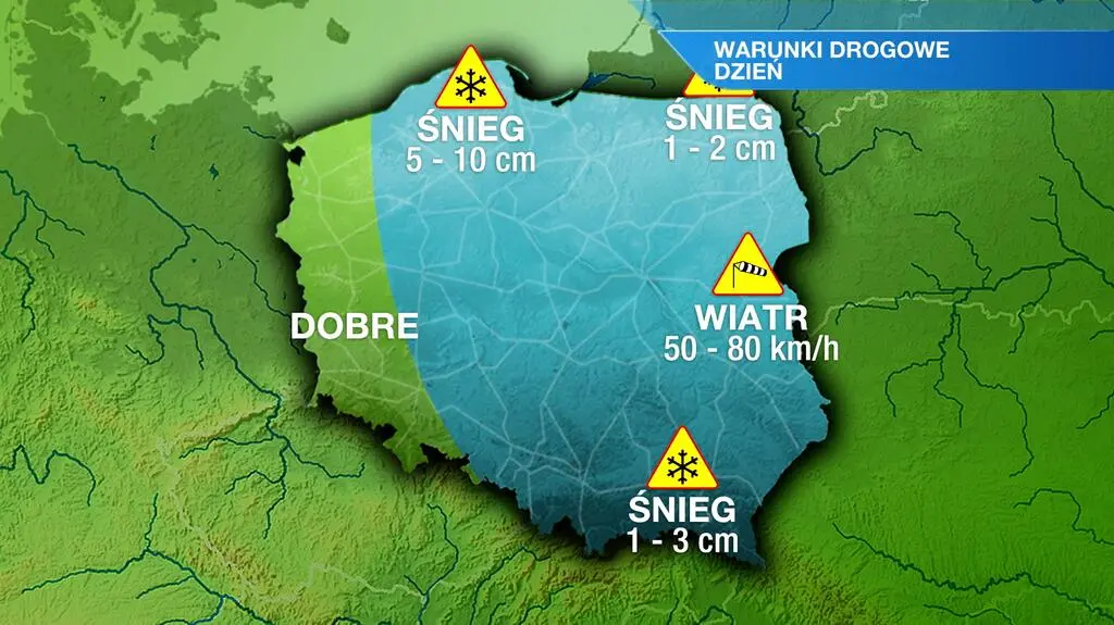 Piątek w całym kraju zapowiada się pochmurno, ale z przejaśnieniami. Dzień przyniesie słabe opady śniegu do 1-3 centymetrów, a na Pomorzu Gdańskim, Żuławach i Kujawach - do 10 cm. Miejscami, głównie w strefie silniejszych opadów, wiatr może powodować zawieje śnieżne. Temperatura maksymalna wyniesie od 1 stopnia Celsjusza na Podlasiu do 4 st. C na Nizinie Szczecińskiej oraz w Kotlinie Gorzowskiej. Zachodni wiatr okaże się umiarkowany i dość silny wiatr, w porywach rozwijający prędkość 50-90 kilometrów na godzinę, a w strefie brzegowej - do 100 km/h.