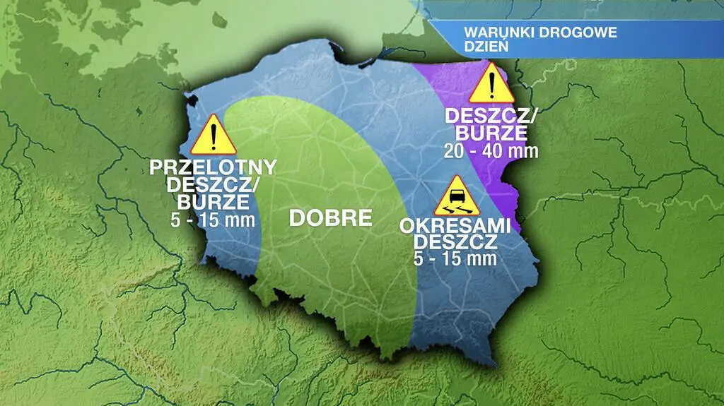 W piątek w Polsce prognozowane jest duże zachmurzenie, ale na zachodzie, południu i w centrum kraju wystąpią rozpogodzenia. W północnych i wschodnich regionach spodziewany jest deszcz do 10-20 litrów wody na metr kwadratowy, który na Podlasiu może być dość obfity - do 30-40 l/mkw. Tam możliwe są też burze. W godzinach popołudniowych, przelotne opady deszczu i burze mogą wystąpić w zachodniej Polsce.