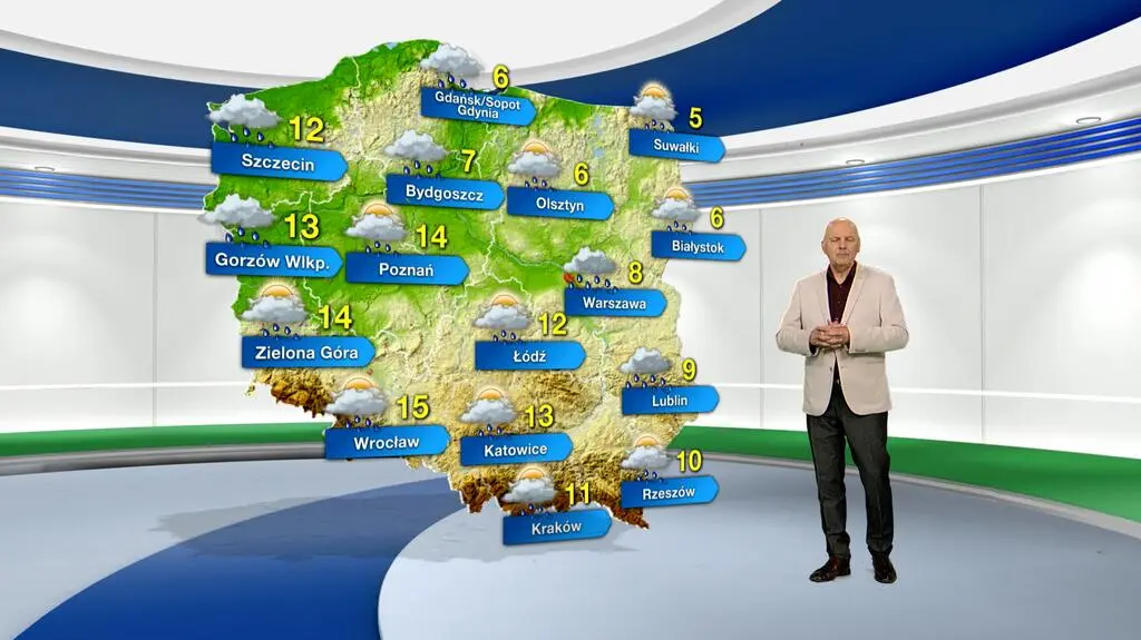 Niebo nad Polską będzie w poniedziałek zachmurzone w dużym stopniu. Spodziewane są przejaśnienia, ale również opady do 4 litrów deszczu na metr kwadratowy. Na termometrach zobaczymy od 5 stopni Celsjusza na Suwalszczyźnie do 15 st. C na Dolnym Śląsku. Wiatr powieje z południowego wschodu. W zachodniej Polsce okaże się on słaby i umiarkowany, zaś na wschodzie - umiarkowany i dość silny, z porywami sięgającymi 50-70 kilometrów na godzinę. Podmuchy w strefie brzegowej będą osiągać w porywach prędkość do 60 km/h.