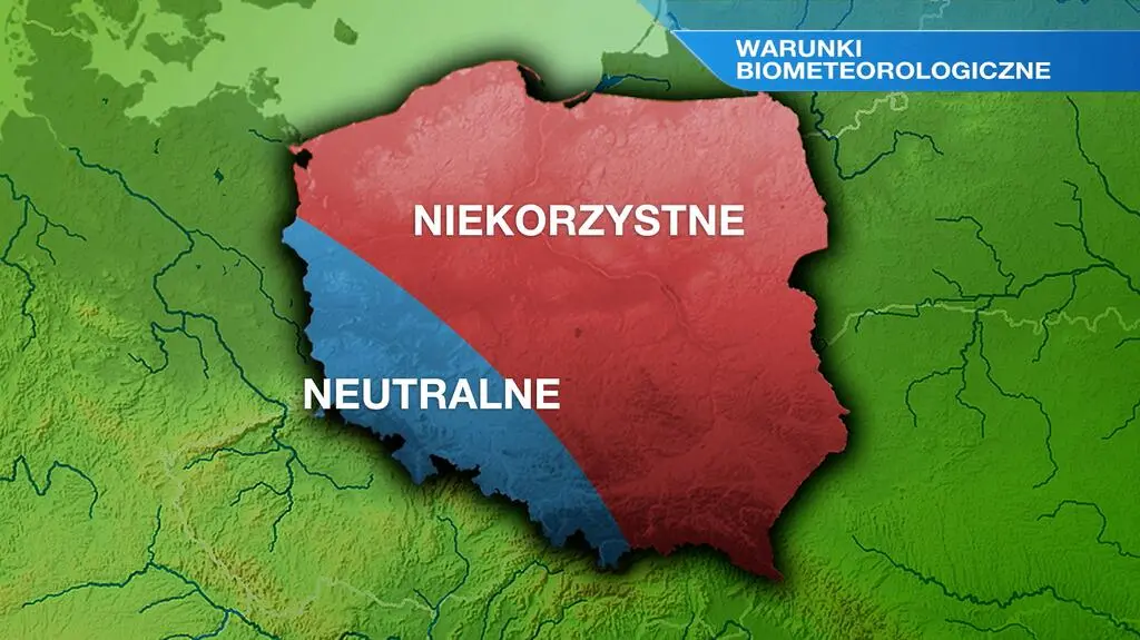 W ciągu dnia wilgotność powietrza wyniesie od 80 procent w regionach południowo-zachodnich do ponad 95 procent na północy. W całej Polsce odczujemy chłód. Zapanują przeważnie niekorzystne warunki biometeorologiczne, neutralne tylko na południowym zachodzie.