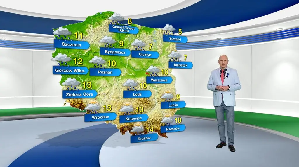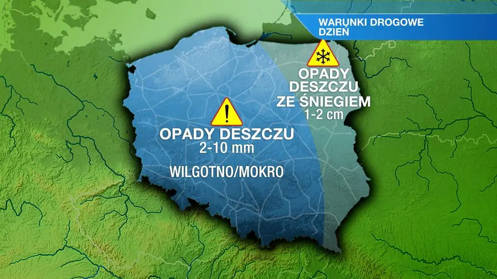 W poniedziałek w Polsce spodziewane jest duże i całkowite zachmurzenie. Z zachodu na wschód przez kraj przemieszczać się będzie strefa opadów deszczu - w południowych regionach może spaść do 2 litrów wody na metr kwadratowy, a na północy nawet 5-10 l/mkw. W godzinach porannych na wschodzie kraju może padać deszcz ze śniegiem, miejscami poprószy sam śnieg. Termometry pokażą od 5 stopni Celsjusza na północnym wschodzie, przez 10 st. C w centrum do 14 st. C na południu. Powieje południowo-zachodni wiatr, dość silny, w porywach rozwijający prędkość do 40-50 kilometrów na godzinę. W górach podmuchy mogą osiągać 50-70 km/h.
