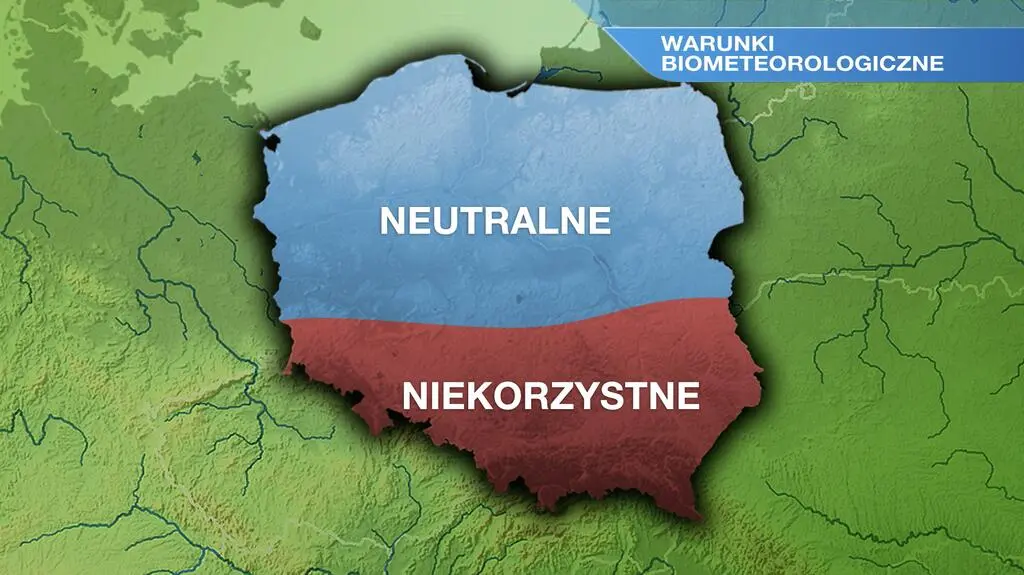 Największa wilgotność powietrza pojawi się na południu Polski. Odczuwać będziemy chłód i wilgoć. Warunki biometeorologiczne będą neutralne w większości kraju, jedynie na południu pogoda wpłynie niekorzystnie na nasze samopoczucie.