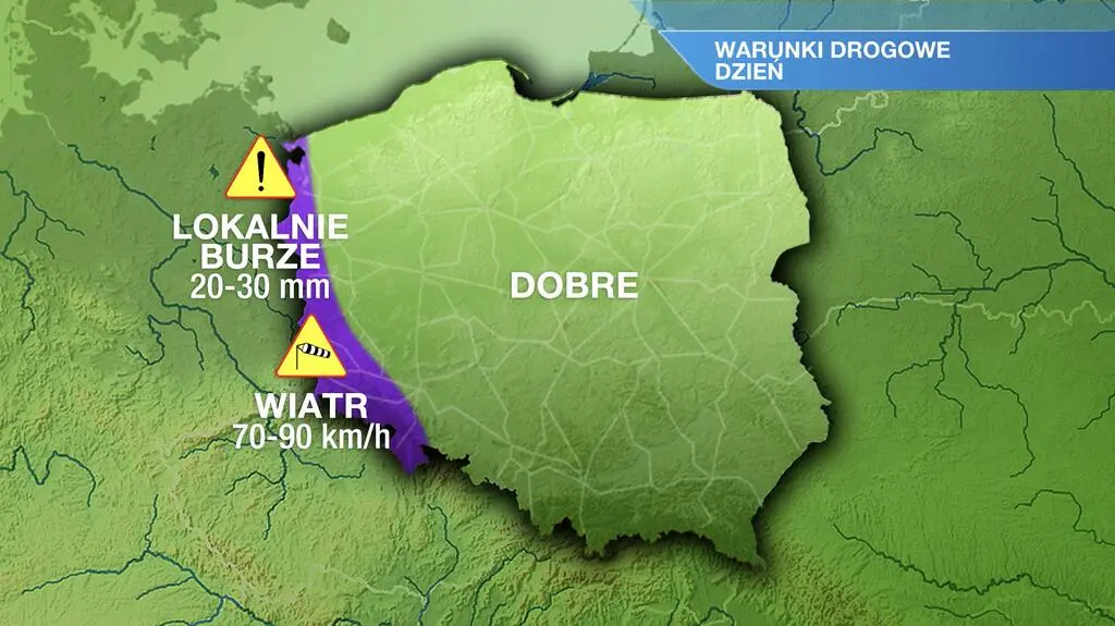 Poniedziałek zapowiada się słonecznie i pogodnie w całym kraju. Po południu w regionach zachodnich pojawi się umiarkowane zachmurzenie, a późnym popołudniem i w nocy mogą wystąpić burze z opadami do 20-30 litrów wody na metr kwadratowy. Na termometrach zobaczymy maksymalnie od 28 stopni Celsjusza na Suwalszczyźnie, przez 31 st. C w centrum kraju, do 35 st. C na zachodzie. Powieje z południowego wschodu, słabo i umiarkowanie. Na krańcach zachodnich wieczorem i w nocy porywy mogą być dość silne i osiągać do 40-60 kilometrów na godzinę. W burzach wiatr rozpędzi się do 70-90 km/h.