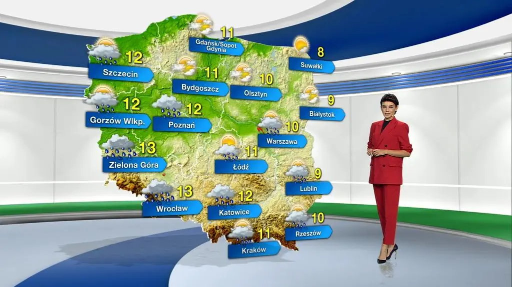 W poniedziałek w południowych, zachodnich i centralnych regionach możliwe jest duże zachmurzenie, a także opady deszczu rzędu 1-5 litrów wody na metr kwadratowy. Na Śląsku może padać silniej - do 10 l/mkw. W pozostałych miejscach dzień zapowiada się pogodnie. Na termometrach zobaczymy maksymalnie od 8 stopni Celsjusza na Suwalszczyźnie do 13 st. C na Dolnym Śląsku. Powieje przeważnie słabo, ze zmiennych kierunków. Jedynie w strefie brzegowej i na Podlasiu porywy mogą być umiarkowane.