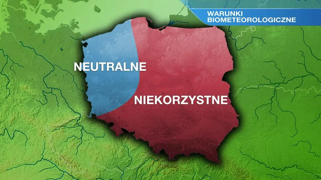Wilgotność powietrza w ciągu dnia wahać się będzie od 70 do 80 procent. Warunki biometeorologiczne przeważnie okażą się niekorzystne, tylko na zachodzie będą neutralne.