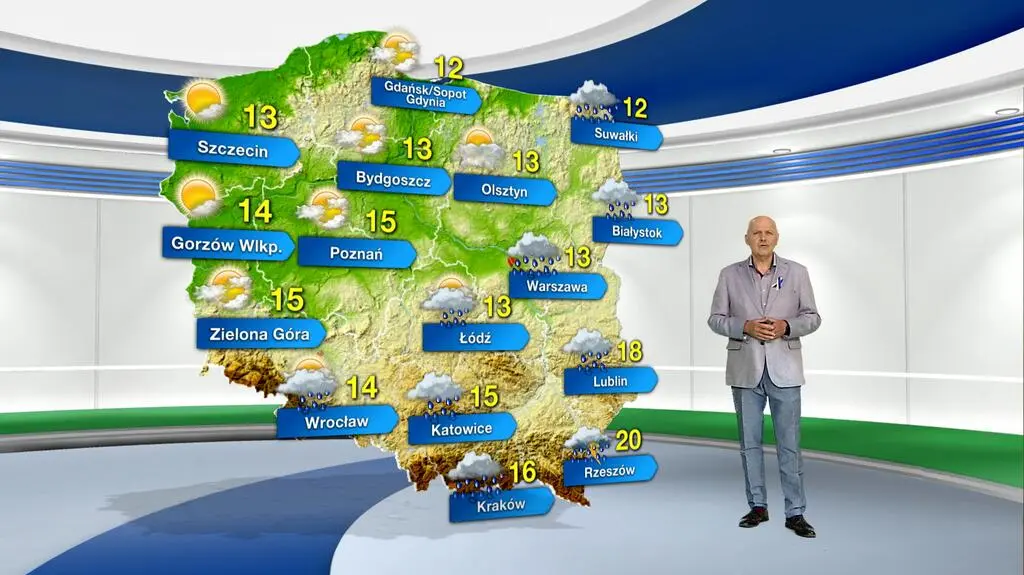 W środę na Mazurach, Kujawach, Pomorzu, Ziemi Lubuskiej i w Wielkopolsce wystąpi małe i umiarkowane zachmurzenie. W pozostałej części kraju będzie pochmurno, tam też popada deszcz o sumie 15 litrów na metr kwadratowy. Na Podkarpaciu i Roztoczu Lubelskim prognozuje się burze, podczas których spadnie do 25 l/mkw., a wiatr w porywach osiągnie prędkość do 60-80 kilometrów na godzinę. Na termometrach zobaczymy maksymalnie od 12 stopni Celsjusza na Suwalszczyźnie do 20 st. C na Rzeszowszczyźnie. Powieje północno-zachodni wiatr, słaby i umiarkowany, w strefie brzegowej może osiągać do 60 km/h.