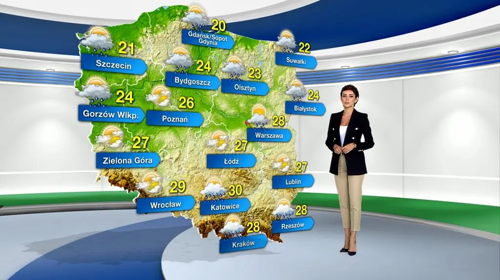 Środa w północnej części kraju upłynie pod znakiem dużego zachmurzenia z okresowymi opadami deszczu. Poza tym na południu i w centrum Polski wystąpi zmienne zachmurzenie z przelotnymi opadami deszczu. Na południu możliwe są również wieczorne burze, podczas których spadnie do 20 litrów wody na metr kwadratowy, a wiatr w porywach osiągnie prędkość do 80 kilometrów na godzinę. Temperatura maksymalna wyniesie od 20 stopni Celsjusza na Pomorzu Gdańskim do 30 st. C na Śląsku. Powieje słaby i umiarkowany, zachodni wiatr.