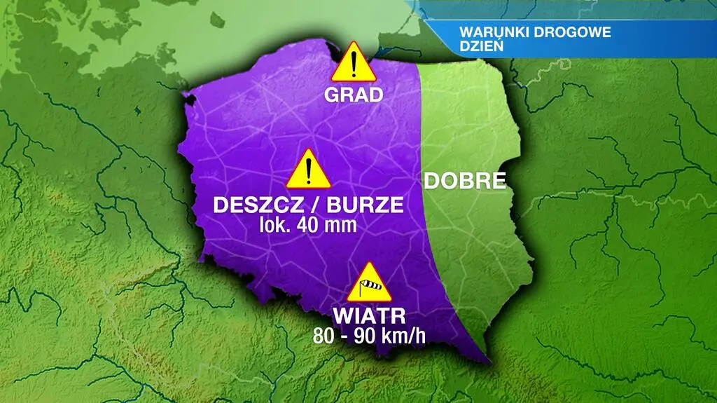 Środa na krańcach wschodnich upłynie pod znakiem pogodnej aury. W pozostałych regionach Polski wystąpi zachmurzenie umiarkowane i duże, kłębiaste z przelotnymi opadami deszczu do 5-25 litrów wody na metr kwadratowy. Miejscami zagrzmi. Burze pojawią się szczególnie w pasie od Zatoki Gdańskiej i Kaszub, przez centrum kraju, po Śląsk i Małopolskę. Podczas wyładowań spadnie grad i ulewny deszcz rzędu 40 l/mkw. Na termometrach zobaczymy maksymalnie od 28 stopni Celsjusza na Warmii, Suwalszczyźnie i Lubelszczyźnie, przez 31 st. C w centrum kraju, do 32 st. C w Małopolsce. Zachodni i południowy wiatr okaże się słaby i umiarkowany, w burzach silny, w porywach rozpędzi się do 70-90 kilometrów na godzinę.