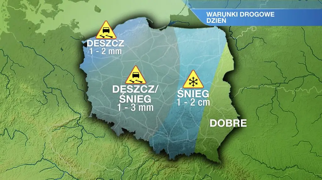 Na środę synoptycy prognozują duże zachmurzenie. Na wschodzie popada śnieg. W centrum śnieg będzie przechodził w deszcz ze śniegiem, a na zachodzie - w deszcz. Temperatura maksymalna wyniesie od -1 stopnia Celsjusza na Podlasiu do 5 st. C na Nizinie Szczecińskiej. Powieje słaby i umiarkowany, na północy okresami silniejszy wiatr z zachodu. W strefie brzegowej porywy sięgną ponad 60 kilometrów na godzinę.