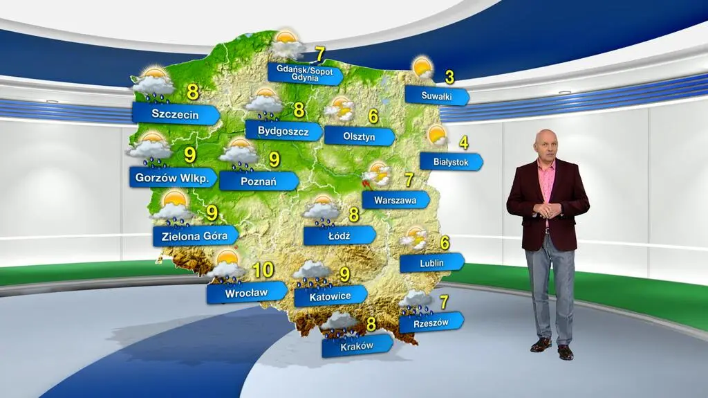 W środę na południu i zachodzie kraju spodziewane jest duże zachmurzenie z przejaśnieniami i opadami deszczu rzędu dwóch litrów wody na metr kwadratowy. W pozostałej części Polski zachmurzenie będzie małe i umiarkowane. W Bieszczadach popada deszcz ze śniegiem, a w Tatrach spadnie do pięciu centymetrów śniegu. Termometry pokażą maksymalnie od 3 stopni Celsjusza na Suwalszczyźnie do 10 st. C na Dolnym Śląsku. Powieje słaby i umiarkowany wiatr, w strefie brzegowej okresami będzie silniejszy, północno-wschodni i wschodni.